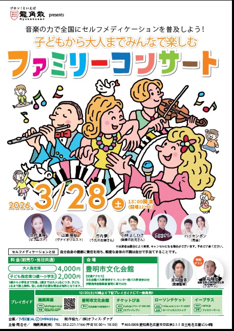 - 出演:小林よしひさ、竹内 夢、山瀬理桜(ヴァイオリニスト)、中村真理(ピアニスト)、ハリセンボン(芸人)、友田オレ(芸人)、宮田俊男(医療監修)
